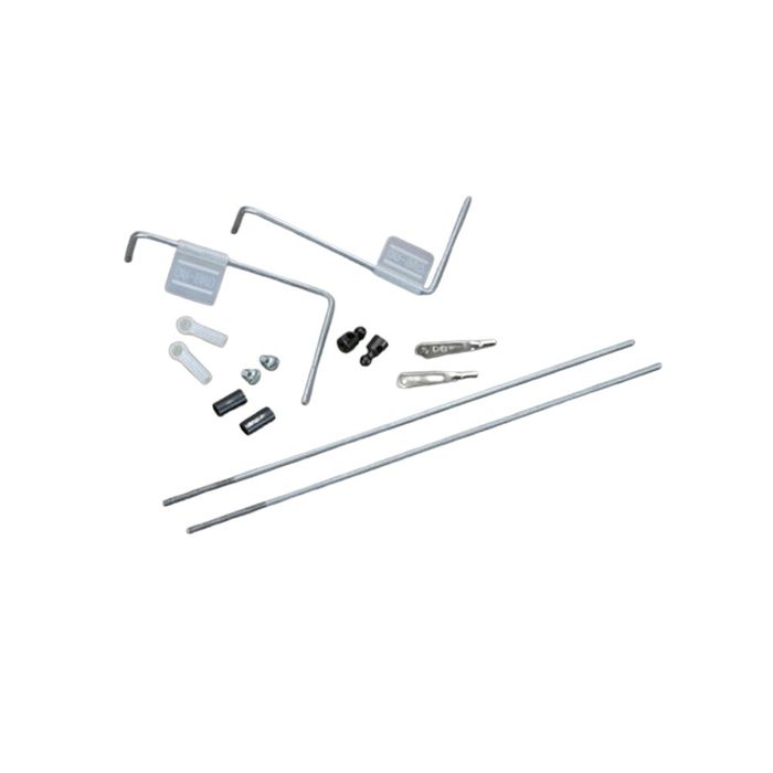 Fully adjustable 16 piece aileron hook-up. No play, no binding, super precision. Eliminates differential throw. Use on high, mid, or low wing airplanes utilizing strip ailerons. Includes all hardware for 2-56 thread and link guards for safety under heavy stress. Horn wire 3/32" diameter. Weight: 20 grams.