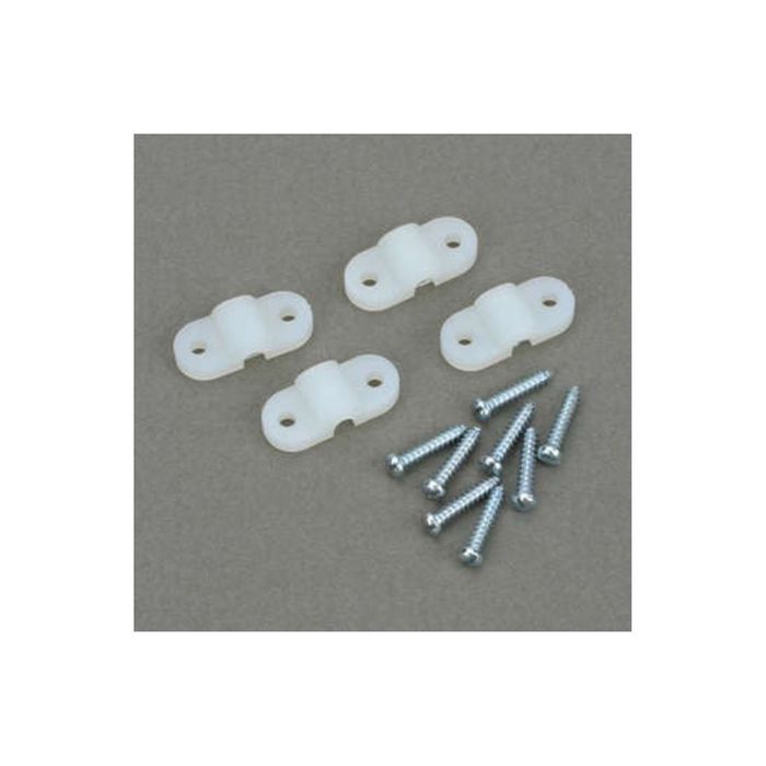Strong nylon straps are molded to fit 1/8" (3mm), 5/32" (4mm) and 3/16" (4.7mm) music wire. Includes 4 each straps and 8 each 2" x 7/16" slotted sheet metal screws. 4 sets/pkg. Weight: #238 & 239 - 0.75 gram/set #811 -...
