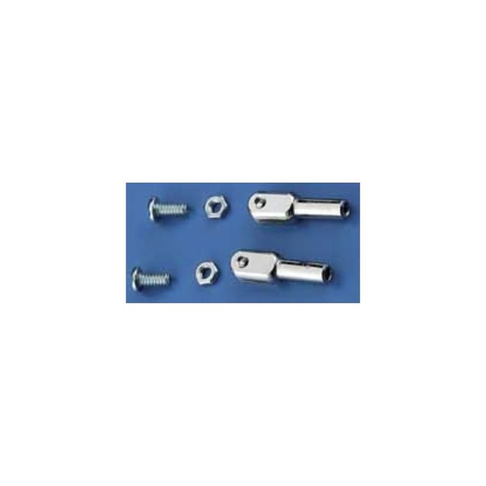 Perfect for many scale applications, including strut attachments, flying wires, tailfin stab bracing, and bi-plane aileron connectors. Heavy duty steel and nickel plated. Includes screws and hex nuts. For use with .093 diameter (4-40) threaded rods. 2/pkg.