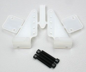 Stronger than conventional nylon control horns, these aerodynamically designed Super Strong control horns come complete with back plate and 2-56 x 1/2" socket head cap screws for easy installation. 1 3/4" (44.45 mm) long with 5 adjustment positions. QTY/PKG:2