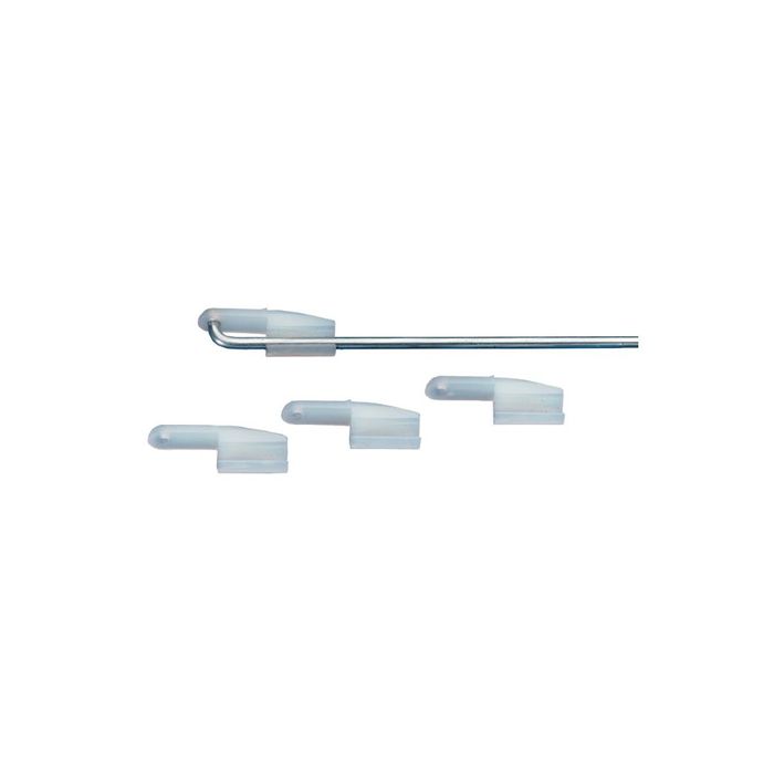 Snap fit on to wire, simply bend 90 degree angle on pushrod and install the E/Z Link on to pushrod (no Z Bend required). Super lightweight design. 4/pkg.