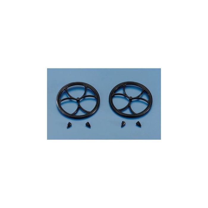 Our new Micro Lite Wheels are available in 3 sizes: 1-1/2" (38mm), 2" (51mm) and 2-1/2" (64mm). They feature a one piece design, with polished spokes and flat black wheel (no O-Rings to come off rim). Comes complete with 2 sets of wheel retainers, a wide axle hub for a true running wheel. Perfect for indoor and park flyers. 1 pair/pkg.
