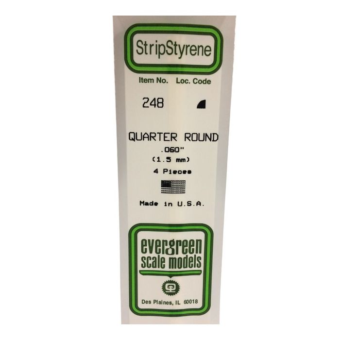 There are 4 StripStyrene .060" Quarter Round Rods Within This