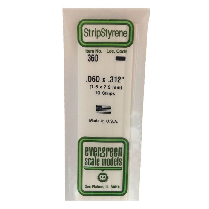Contains Ten .060" X .312" X 24" OPAQUE WHITE POLYSTYRENE STRIP