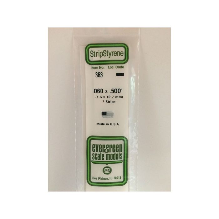 INCLUDES: Seven .060" x .500" White Styrene Strips