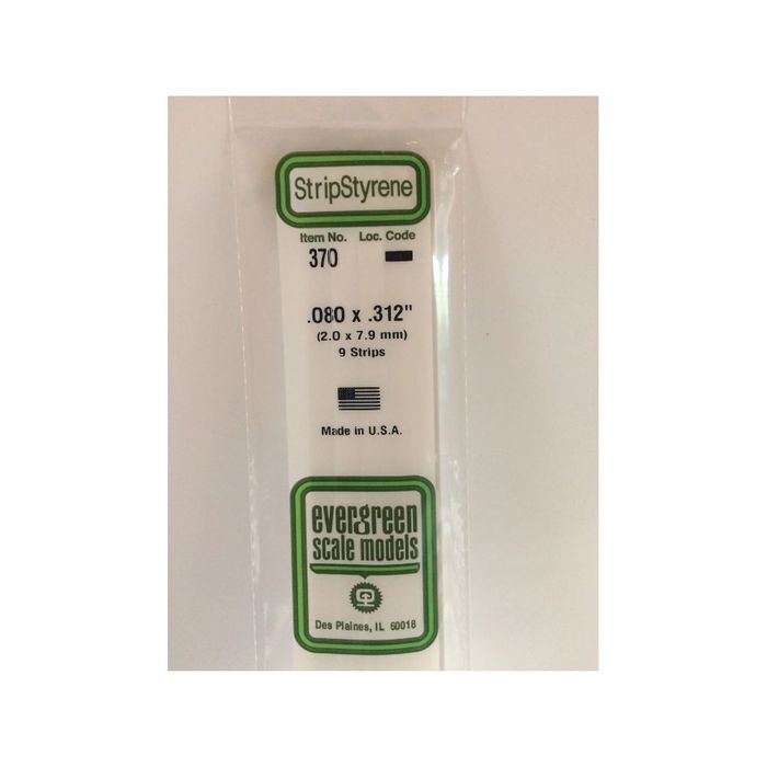 Contains Nine .080" X .312" X 24" OPAQUE WHITE POLYSTYRENE STRIP .080" X .312" X 24" / 2.0mm X 7.9mm X 60cm