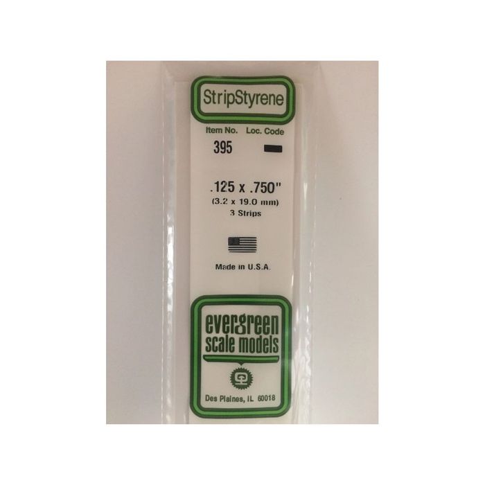 Contains Three .125" X .750" X 24" OPAQUE WHITE POLYSTYRENE STRIP .125" X 750" X 24" / 3.2mm X 19.0mm X 60cm
