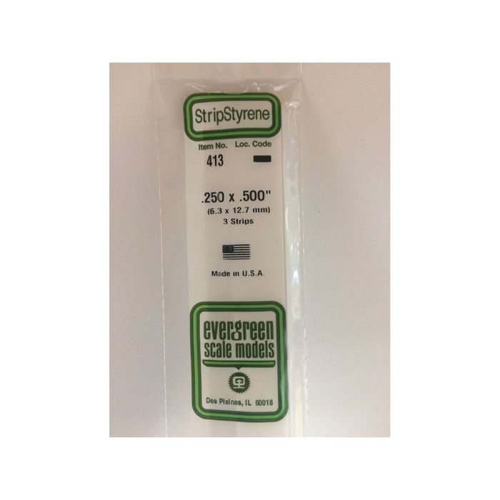 Contains Three .250" X .500" X 24" OPAQUE WHITE POLYSTYRENE STRIP .250" X .500" X 24" / 6.3mm X 12.7mm X 60cm