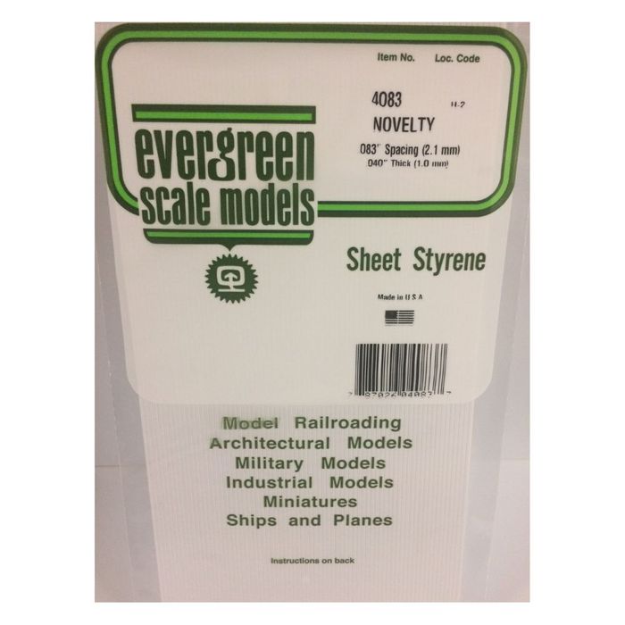 FEATURES: White styrene sheet is 12" x 6". The sheet has a groove in it every .083". Sheet may be cut and shaped to fit modeling needs - small scale to larger scale. Sturdy and durable. Used for train scratch building or general scratch model building. User friendly, economical, and high quality styrene enhances scratch model building techniques. May be painted and weathered.