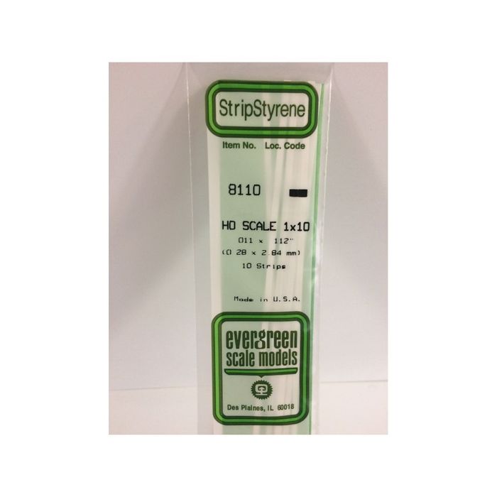 Contains Ten .011" X .112" OPAQUE WHITE POLYSTYRENE HO SCALE STRIPS (1X10)