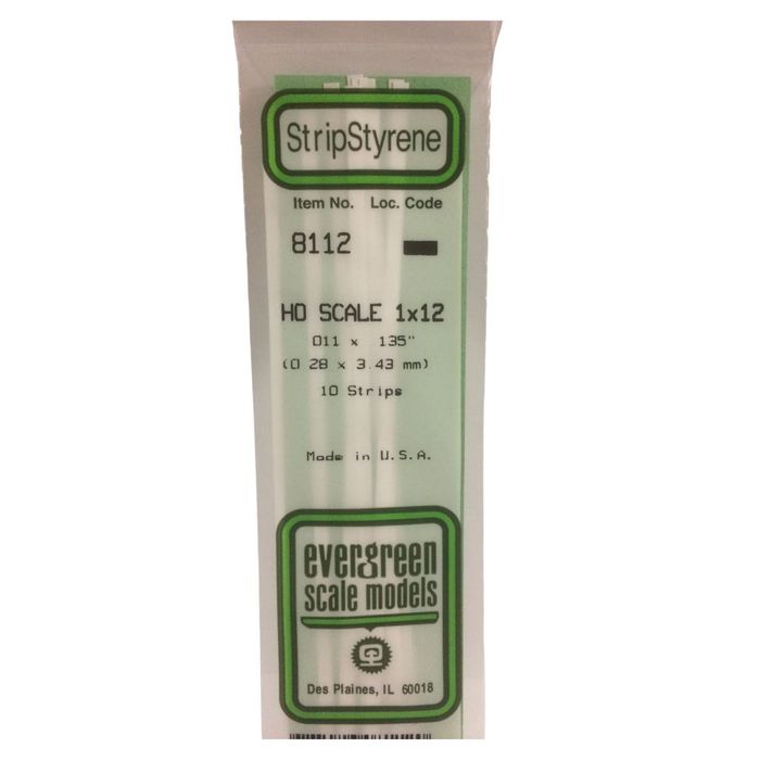 Contains Ten .011" X .135" / .3mm X 3.4mm OPAQUE WHITE POLYSTYRENE HO SCALE STRIPS (1X12)