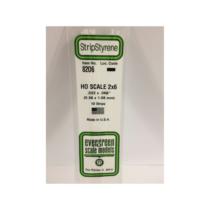 Contains Ten .022" X .066" / .6mm X 1.7mm OPAQUE WHITE POLYSTYRENE HO SCALE STRIPS (2X6)
