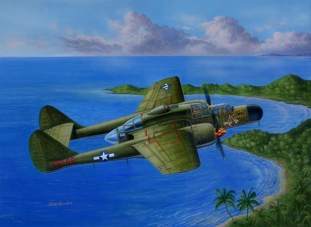 The first 37 P-61 were installed with a four gun turret on the back of the fuselage and deleted on the following aircrafts.The first unit to take the P-61A into combat was the 6th Night-Fighter Squadron in Hawaii.The Black Widow soon replace the Douglas P-70s and P-38J on 1 May 1944.