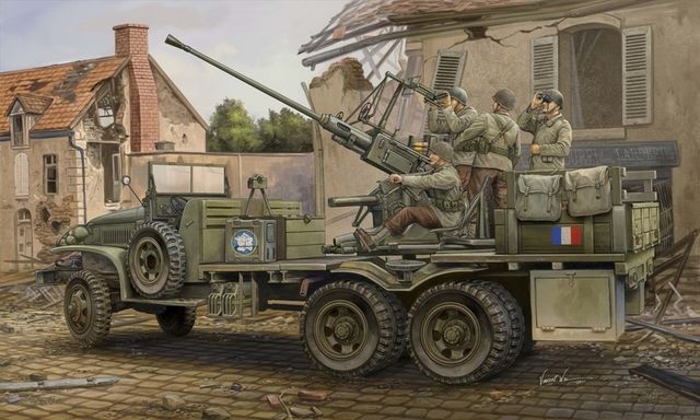 The U.S. military decided to ask various companies to create a troops transport vehicle quickly available and convenient. In 1941, the GMC firm won and the production began. . The qualities of this vehicle were numerous: the use of a tarp to cover the cabin provided a real economy, compared to the use of sheet metal. Easily deployable, the GMC CCKW 353 could serve both as a troops transport vehicle, so as a medical evacuation vehicle, food and ammunition resupply vehicle. Sold around the world after the Second World War, the vehicle remained in service in many armies,some of the vehicles equip with the 40mm BOFORS,and working in france.