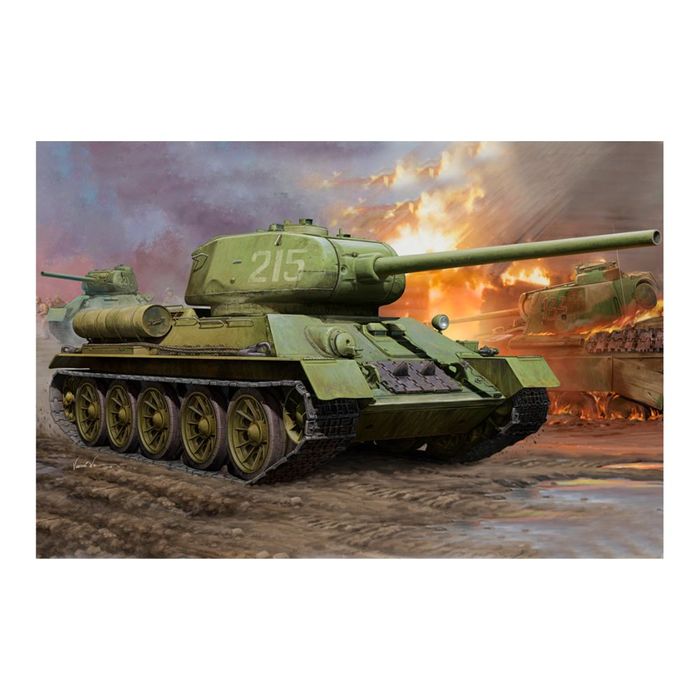 Considered by many as possibly the best tank of World War 2,the T-34/85 was fast,manoeuvrable and hard-hitting.Appearing in huge numbers from early 1944.it led the assault on Germany until the end of the war;when it was widely exported to many communist nations.The major change in T-34 production after 1943 was the arrival of the 85mm(3.34in) gun T-34/85,which had a new three-man turret and a larger-diameter turret ring.Both the T-34/76 and /85 were built in parallel until mid-1944,when production of the former stopped after 35,099 had been completed.