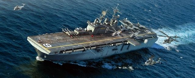 Wasp class amphibious assault ship LHD-6 Bon homme Richard is one of the main U.S. amphibious ships, the ship in 1995 with the keel laying, launched in March 14, 1997, entered service in August 15, 1998, has 10 years of time. Is the world's largest tonnage, and take the largest number of amphibious assault ship. The ship is equipped with a hovercraft and mechanized landing craft. And with CH-53, AH-1Z and AV-8B. In addition to having one naval and air delivery, can also provide air for the landing force support. In addition to conventional combat mission, Bon homme Richard can also be matched or replace the U. S. aircraft carrier formation the implementation of Maritime Command and control task.