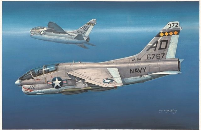 The LTV A-7 Corsair II was a light attack aircraft based on the F-8 Crusader. The A-7 was one of the first combat aircraft to feature a head-up display (HUD). doppler-bounded inertial navigation system, and a turbofan engine. It served with both the United States Navy and the United States Air Force, and later with the Air National Guard. It was also exported to South Vietnam (during the Vietnam War), Greece (A-7H), Portugal(A-7P), and Thailand (in the late 1980s)
