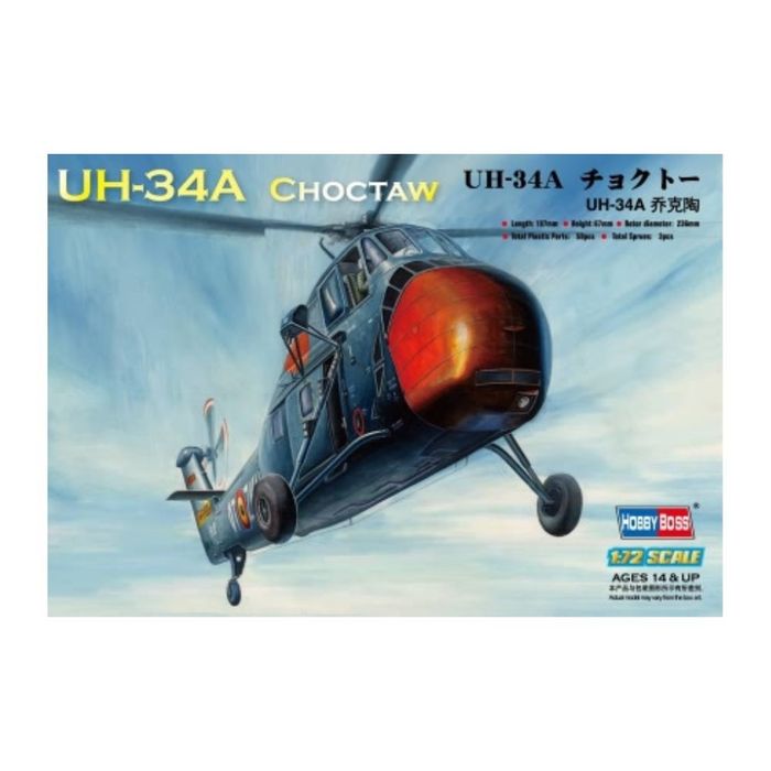 The Sikorsky H-34 Choctaw was a helicopter originally designed for the US Navy for service in the anti-submarine warfare (ASW) role. It was developed from the Sikorsky UH-19 Chickasaw. It was powered by a single Wright R-1820-84 radial engine, and could carry 12 to 16 troops, or eight stretcher cases if utilized in the MedEvac role. It is a utility transport helicopter, with no armament on board. The aircraft first flew on March 8, 1954. It was initially designated HSS Seabat by the Navy and HUS Seahorse by the US Marines and US Coast Guard. In 1962 all services adopted the US Army designation, H-34 Choctaw. In 1962 under the new unified system, the Seabat was redetermination SH-34?