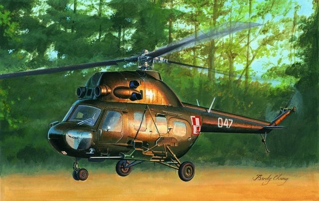 The Mi-2 (NATO reporting name is "Hoplite") is a small, lightly armored transport helicopter that could also provide close air support when armed with 57 mm rockets and a 23 mm cannon.