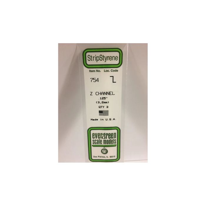 754 - .125" (3.2MM) OPAQUE WHITE POLYSTYRENE Z CHANNEL