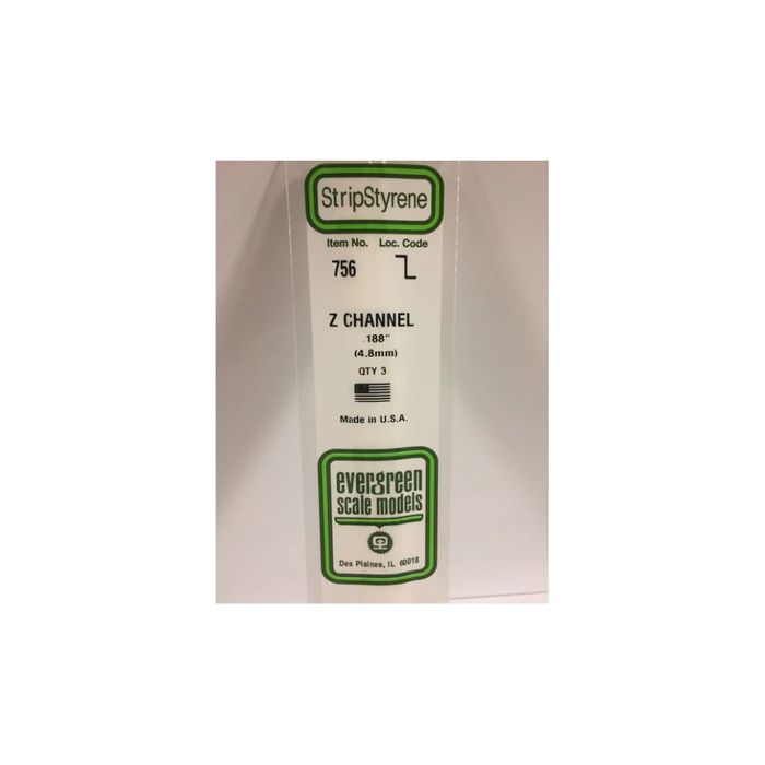756 - .188" (4.8MM) OPAQUE WHITE POLYSTYRENE Z CHANNEL