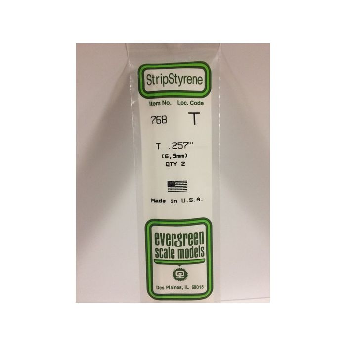 768 - .257" (6.5MM) OPAQUE WHITE POLYSTYRENE T SHAPE