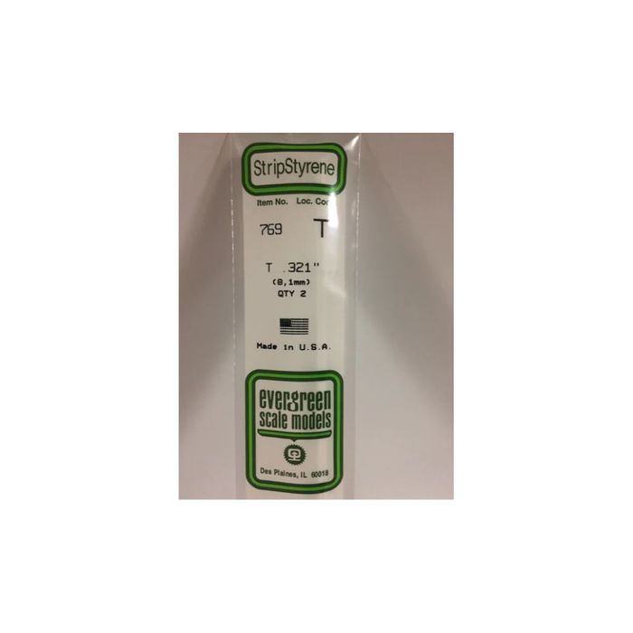 769 - .321" (8.1MM) OPAQUE WHITE POLYSTYRENE T SHAPE