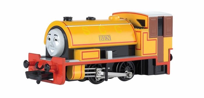 THOMAS & FRIENDS™ BEN ENGINE w/Moving Eyes - HO Scale. Ben and Bill are twin engines, and identical in every way. Ben enjoys being mischievous and teasing the other engines in the Railway. Ben is a low-slung 0-4-0 Saddle-tank engine built by WT Bagnall of Stafford. Bachmann carefully reproduces your favorite Thomas & Friends™ characters in HO scale. All locomotives feature realistic faces with moving eyes, operating HO scale electric drive mechanisms, highly detailed plastic body shells, all-metal wheels, and international-style hook-and-loop couplers.
