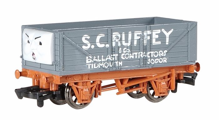THOMAS & FRIENDS™ S.C. RUFFEY - HO Scale. S.C. Ruffey (also known as Scruffey) is a Private-Owner ballast truck and the ringleader of the Troublesome Trucks. Bachmann carefully reproduces your favorite Thomas & Friends™ characters in HO scale. All rolling stock features realistic character faces (where applicable), highly detailed, realistic plastic body shells, all-metal wheels, and international-style hook-and-loop couplers.