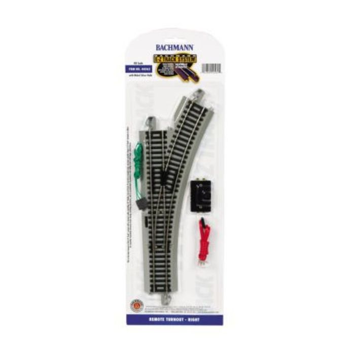 This is the basic turnout of the E-Z Track® system with a turnout radius matching 18” Radius Curved Track. If you have enough room, you may consider larger E-Z Track® turnouts to allow for smoother transitions between tracks during switching operations, and to accommodate locomotives and rolling stock with longer wheel bases.