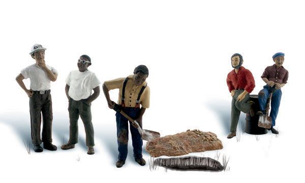 Add this scene to your layout, with five workers…uh, make that one worker, four supervisors and a barrel and pile of dirt!
