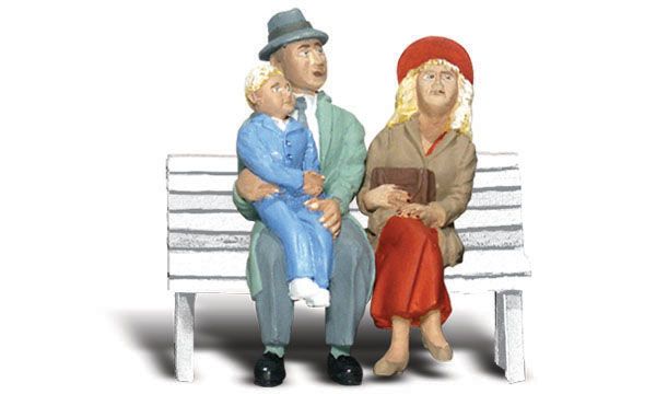 Dad, mom and baby Seymore, can sit on any park bench just enjoying the day, or wait at a bus stop.