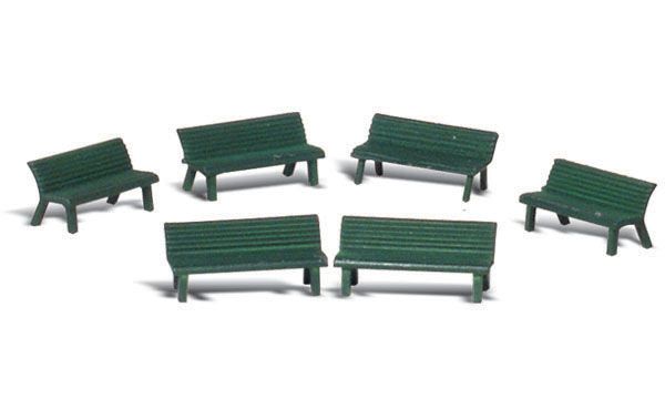Set of benches ready for your layout residents to sit and enjoy the park, wait for the bus or place anywhere else you would find seated pedestrians.