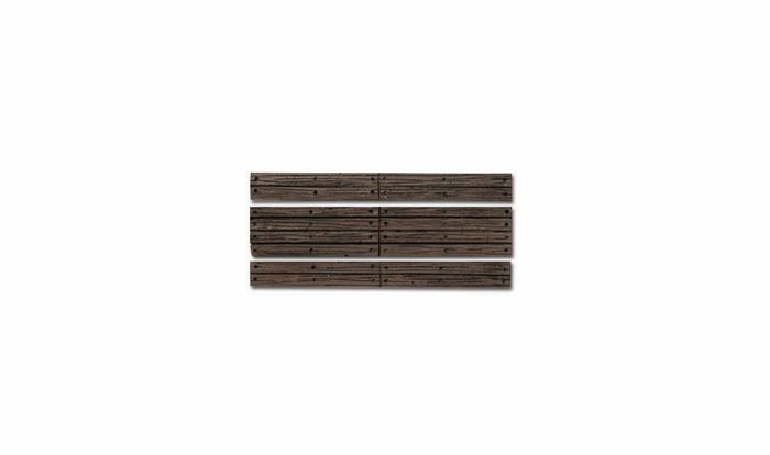 Realistic looking and ready-to-place. Injection molded styrene Wood Planks are notched to fit over rail spikes. Includes pre-cut styrene shims to correspond to proper code. Two crossings in each package. 2.72 in long (6.908 cm)