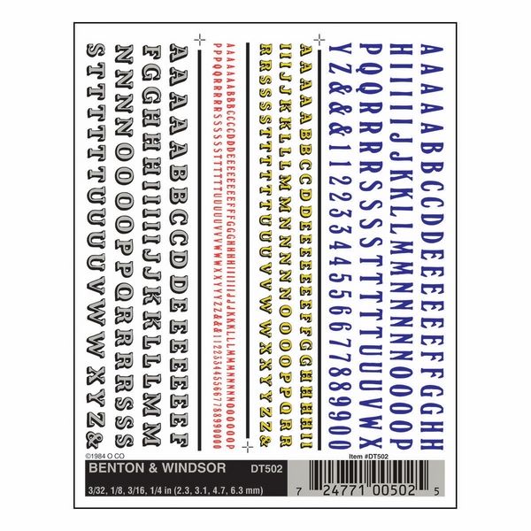 Font sizes 3/32 in, 1/8 in, 3/16 in, 1/4 in (2.3 mm, 3.1 mm, 4.7 mm, 6.3 mm)