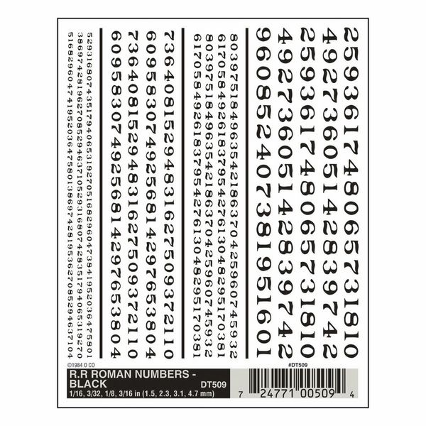 Font sizes 1/16 in, 3/32 in, 1/8 in, 3/16 in (1.5 mm, 2.3 mm, 3.1 mm, 4.7 mm)