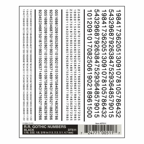 Font sizes 1/16 in, 3/32 in, 1/8 in, 3/16 in (1.5 mm, 2.3 mm, 3.1 mm, 4.7 mm)