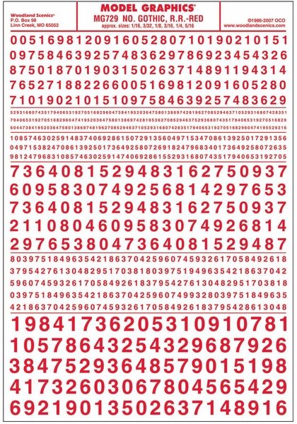 Woodland Scenics Numbers Gothic Rr Red Dt