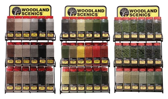 Choose various assortments of ground covers and Ballast in varying colors and textures that coordinate perfectly. Customers can mix, match and blend with complete assurance that their finished model will look natural and realistic.