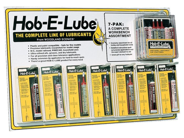 Hob-E-Lube is a complete, special-purpose line of lubricants designed for close tolerance model requirements. All Hob-E-Lube lubricants have been performance tested for use with trains, R/C cars, planes and boats and general household use. They are plastic and paint compatible.