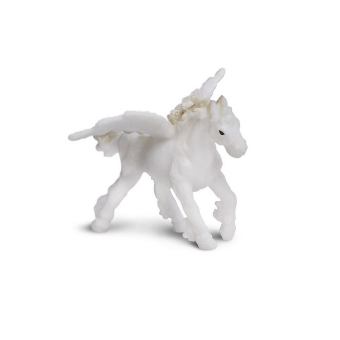 - Size and Color: White, of course, this flexible Pegasus is as long as it is wide, about the size of a large playing die.