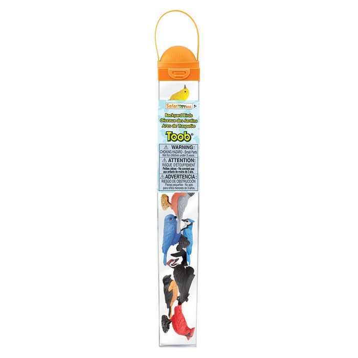 - Grab your binoculars and look out your back window for any of the beautiful birds found in this Toob, including a woodpecker, indigo bunting, robin, oriole, warbler, cardinal and a Blue Jay. Don’t get too close, or you might scare away these timid creatures!