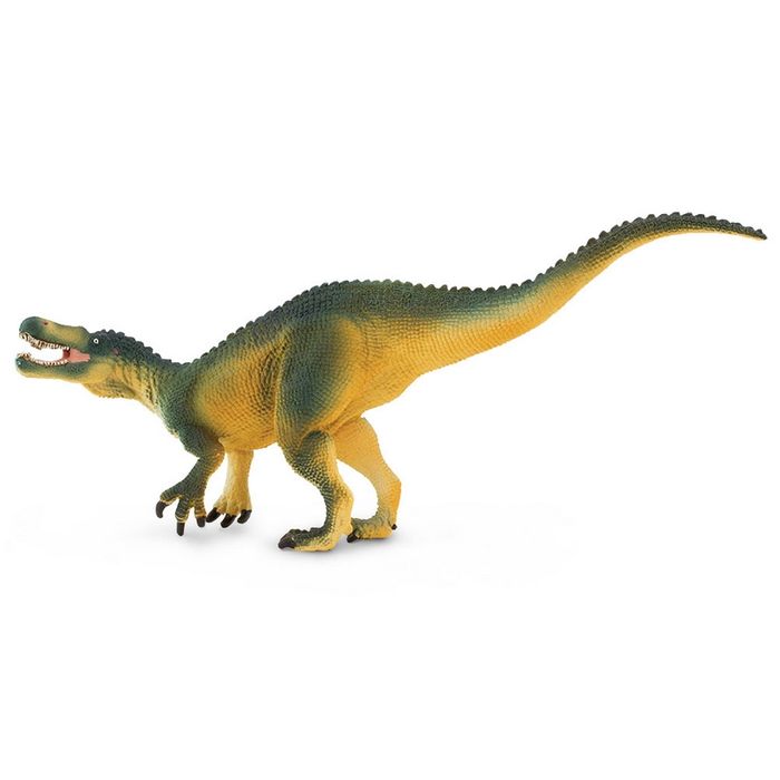 - Size and Color: This figure is 7.5 inches long and 3.75 inches high. The model has a dark green back and orange-yellow belly. Like modern crocodiles and alligators, such a color combination would make the dinosaur harder to see in the water by their prey.
