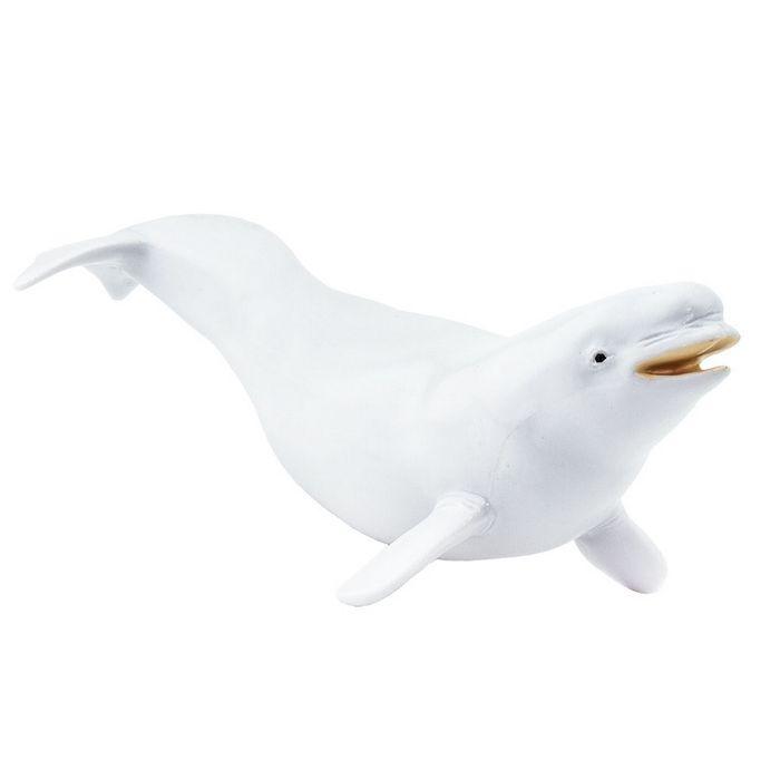 - Size and Color: Beluga whales are unique in their physical appearance because they are completely white. 8 inches long and 3 inches tall, both dimensions of this model are a bit larger than a 16 oz. water bottle on its side.