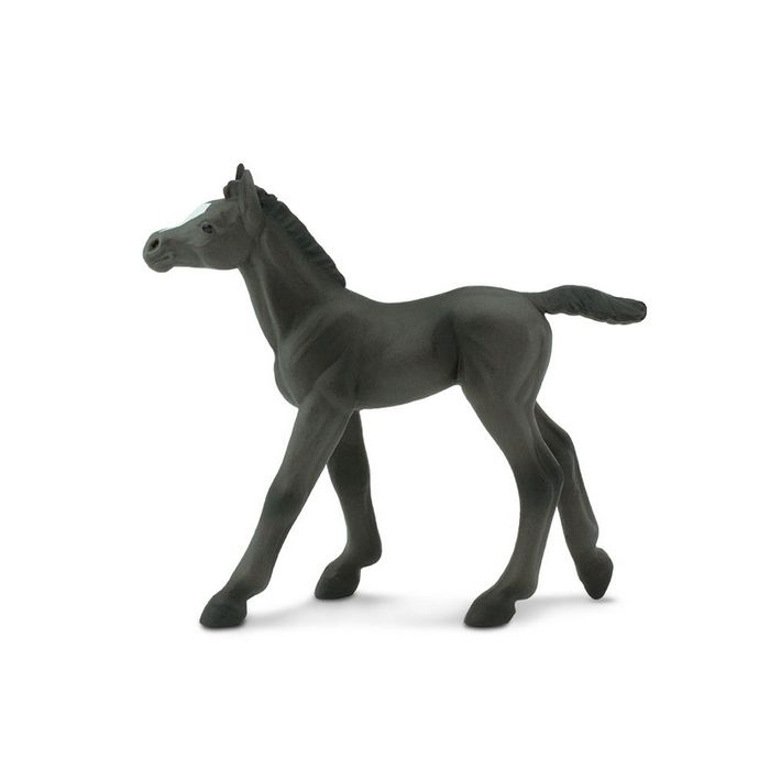 - Size and Color: A sleek black coat contrasts with a splash of white between the Arabian’s eyes and down its muzzle. The Foal figure is 3 ½ inches long and 3 inches tall, about the size of a softball.