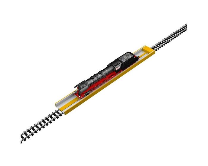 Place the aluminum base on track to power tapered slots that that allow you to drive your longer, multi-wheeled locomotives (or any motive power) right onto the track. Base length: 23 cm (9 inches).