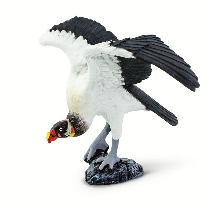 - Characteristics: King Vultures are known for their brightly colored, unfeathered heads. This particular vulture is in a hunched pose, perched on a rocky outcropping, with its wings spread. Scientifically accurate and hand-painted, this figure is full of intricate details.