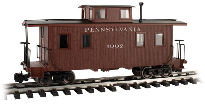 Center Cupola Caboose - PENNSYLVANIA #1002 - Large "G" Scale. Our Center-Cupola Caboose is a standard American style caboose. The most common form was a small windowed projection on the roof, called the cupola. The crew sat in elevated seats to inspect the train from this perch while the train was moving. The caboose also provided the train crew with a shelter at the rear of the train. The crew could exit the train for switching or to protect the rear of the train when stopped. Bachmann Center-Cupola Cabooses come in a variety of road names. Each caboose is fully assembled and features include; Highly Detailed Painted Bodies with Precision Graphics (where applicable), Blackened Machined Metal Wheels, Operating Knuckle Couplers, Large Scale Design, and Runs on G Gauge - 45 mm track.