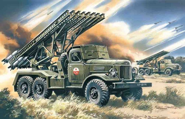 During the WWII years the multiple launch rocket system BM-13-16 “Katiusha” became the symbol of Soviet rocket artillery power. After the war launch system has installed on the new ZiL-157 chassis with high cross-country capabilities.The artillery part of the system has formed by 8 rail-type bilateral launch guides with16 rocket projectiles of M-13 (132mm) type. The multiple launch rocket system BM-14-16 has developed at the beginning of 50s. The artillery part of the system has formed by 16 launch tubes with 16 turbo-rocket projectiles of M-140 type. MLRS BM-24-12 was the most powerful rocket system in it’s class in the world during mid-50s-early 70s period. The artillery part of the system has formed by 12 framed-cell launch guides with 12 turbo-rocket projectiles of M-24 type.