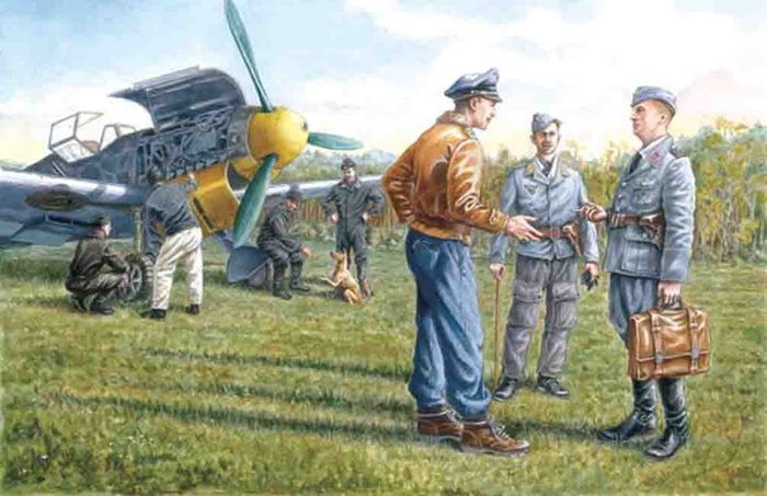 The kit includes seven figures – three pilots and four mechanics of WWII German Luftwaffe.